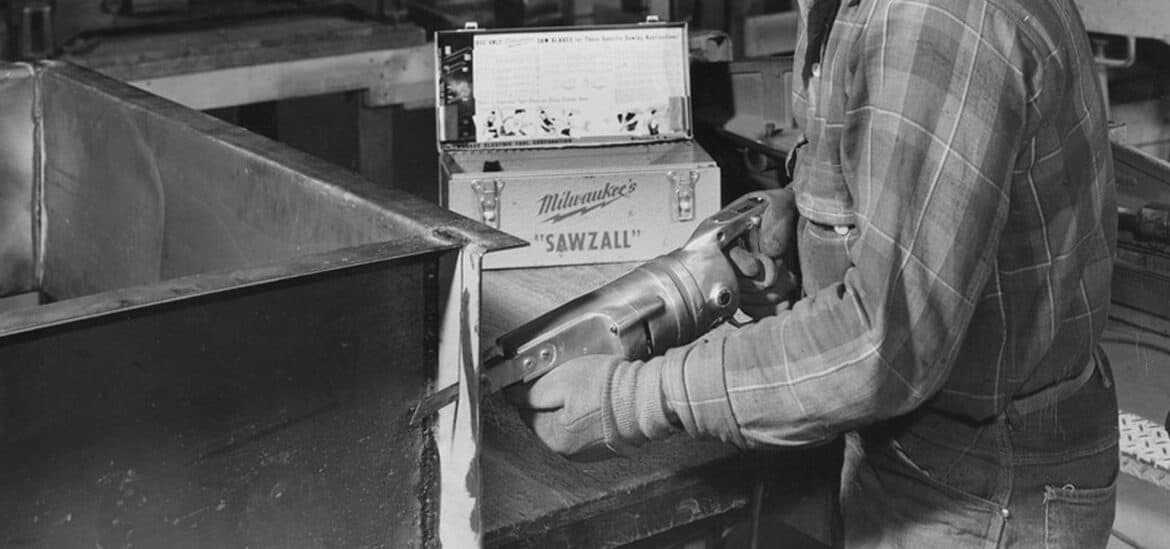 受到矚目的是 1949 年發(fā)明的 1/2 英寸直角鉆,這是可以讓電工和管道工在受限環(huán)境中進(jìn)行作業(yè)的工具。接下來(lái)的一項(xiàng)重大飛躍是 1951 年推出的 SAWZALL? 往復(fù)鋸。這款開(kāi)創(chuàng)性的工具采用了一種只有三個(gè)移動(dòng)部件的往復(fù)機(jī)構(gòu),一臺(tái)手提式電動(dòng)鋼鋸。它經(jīng)久耐用,足以勝任每天需要完成的繁重工作,而且使用 SAWZALL? 往復(fù)鋸片系列用戶能夠鋸割各種材料,使其功能更加豐富,在市場(chǎng)上更受歡迎。